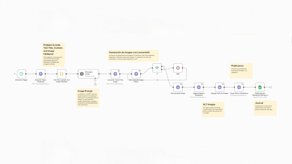 • A fully-built n8n automation workflow that runs every Monday at 6:00 AM • Perplexity AI startup trend researcher (real-time topics) • GPT-powered 1,000–1,500 word SEO article generator • Automatic HTML formatting for WordPress • Leonardo AI cinematic featured image generator • AI-generated SEO-optimized image ALT text & filename • Automatic WordPress publishing system • Featured image + category assignment • Google Sheets post tracking dashboard • Ready-to-import n8n workflow file Your blog runs itself: research → write → image → publish → track